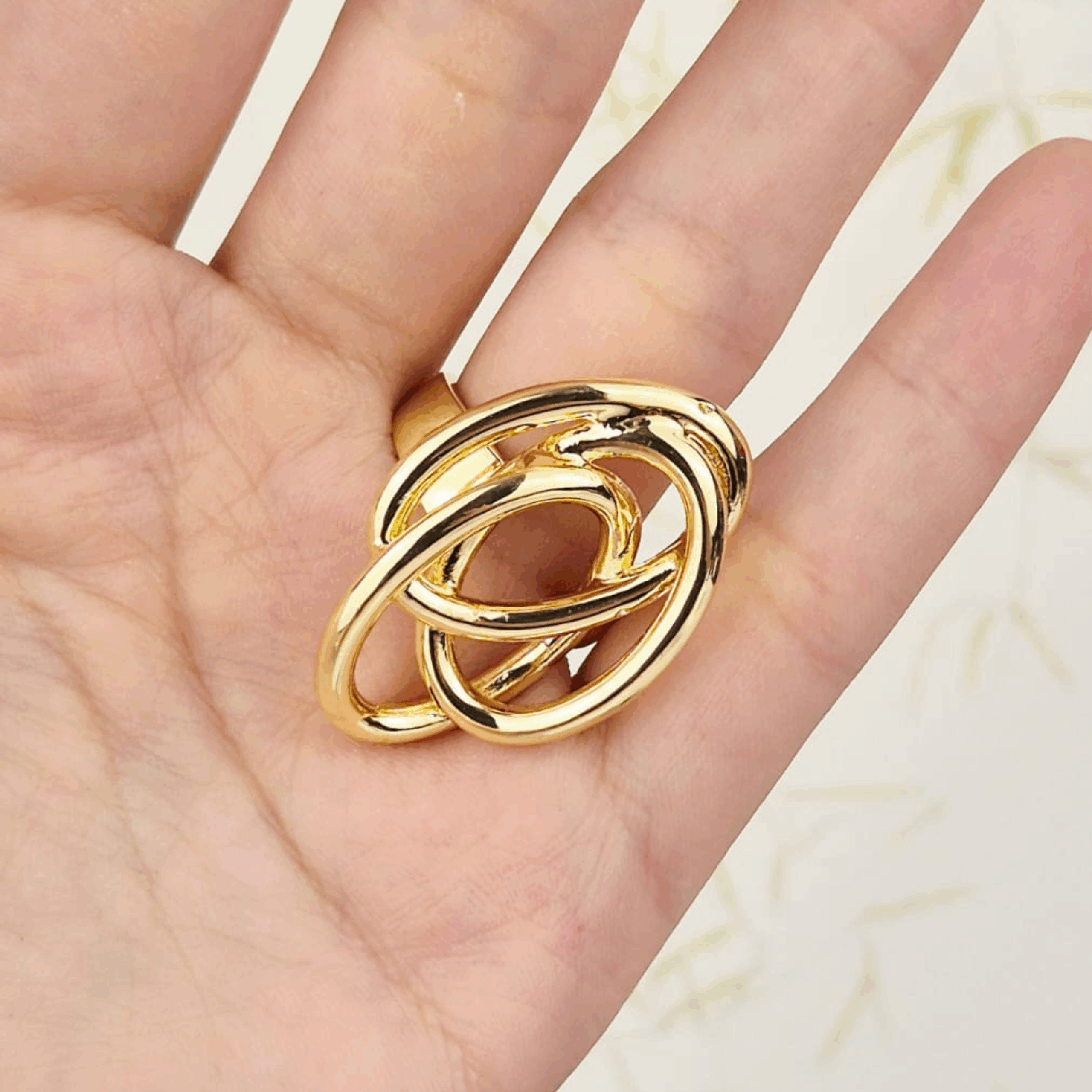Fabricado en chapa de oro, este anillo combina durabilidad, brillo y elegancia, ideal para quienes buscan accesorios con presencia y originalidad. Su diseño ajustable garantiza un ajuste cómodo y adaptable.