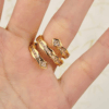 Fabricado en chapa de oro, este anillo ofrece un acabado pulido y duradero, perfecto para complementar tanto looks casuales como formales. Su diseño ajustable permite un uso cómodo y versátil.