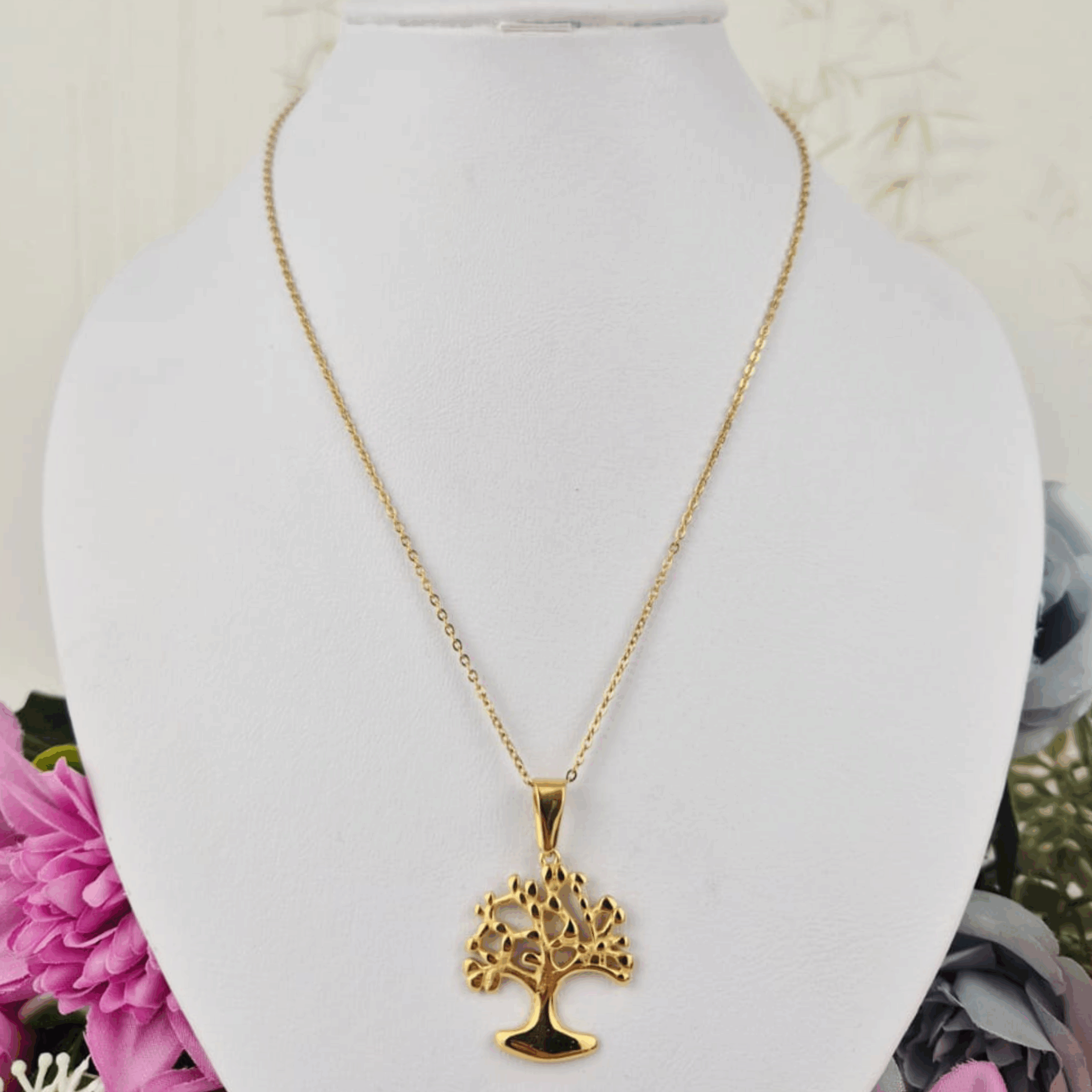El Collar Árbol de la Vida en Acero Inoxidable Dorado es una joya cargada de simbolismo y elegancia. Su dije en forma de árbol representa crecimiento, fuerza, conexión y sabiduría, convirtiéndose en un amuleto significativo para quien lo lleva.