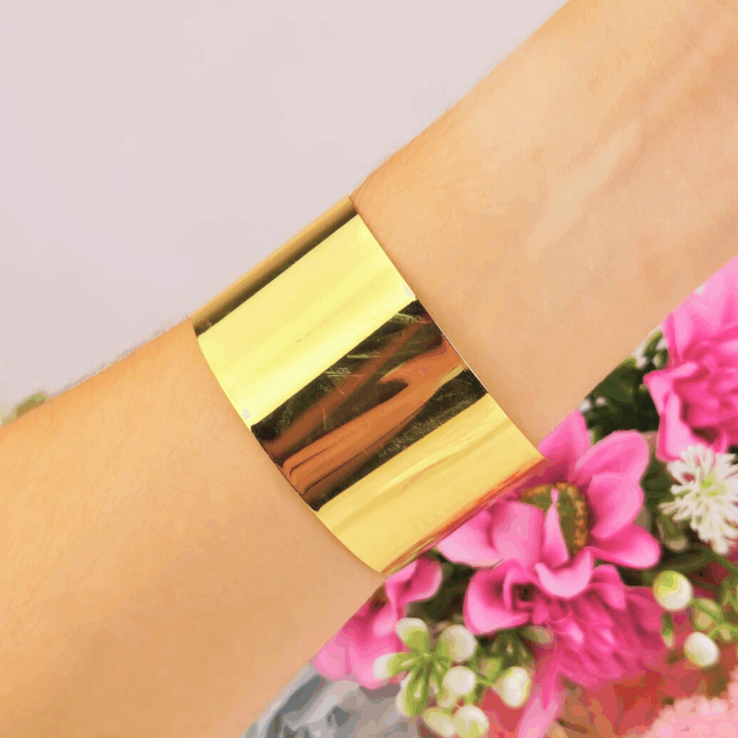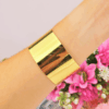 El Brazalete Ancho Liso 38 mm en Chapa de Oro es un clásico atemporal que nunca pasa de moda. Su diseño simple y pulido aporta un toque de elegancia a cualquier look, destacando por su acabado brillante y su estructura sólida.