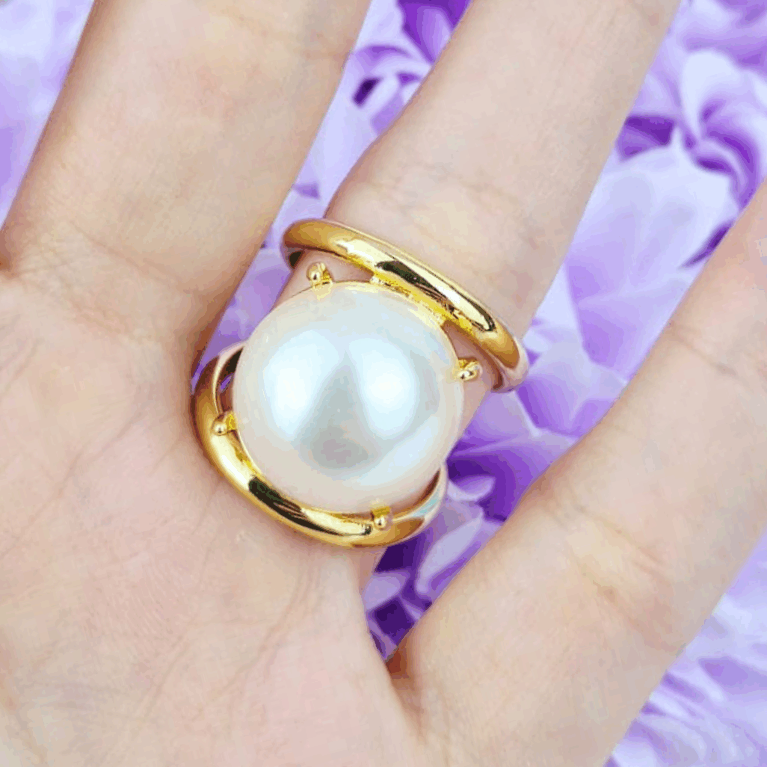 Un anillo elegante y sofisticado que destaca por su perla maxi, diseñada para ser el centro de atención. Su bisel delgado en chapa de oro rodea la perla de forma sutil y moderna, creando un balance perfecto entre minimalismo y impacto visual.